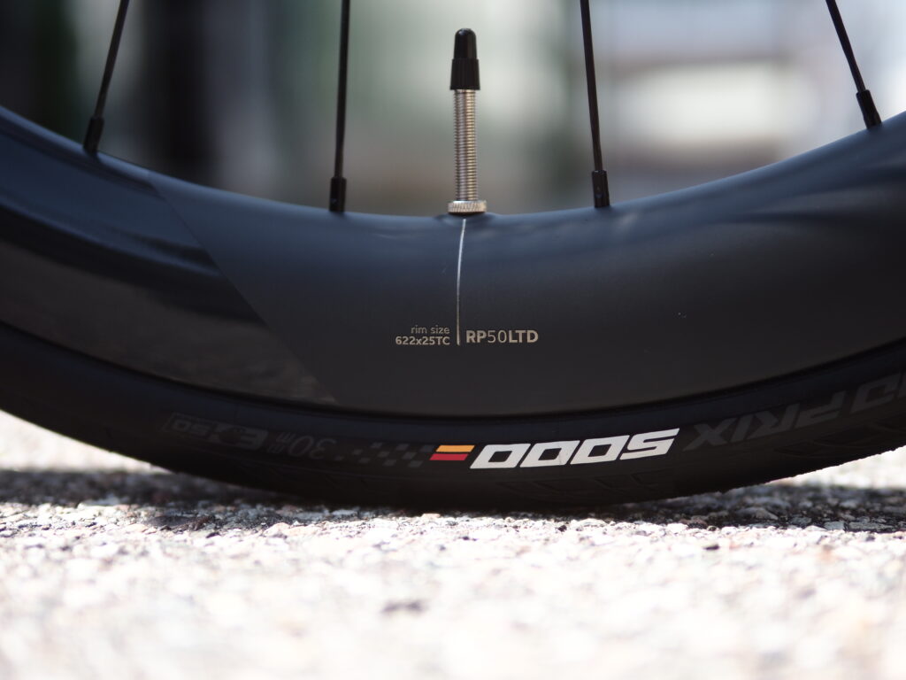 交換したタイヤはContinentalのGP5000 700×30c。組み合わせるホイールがリム内幅25mmあるので、ロード用で使うとしてもこのくらいのタイヤを入れておくのがベターです。