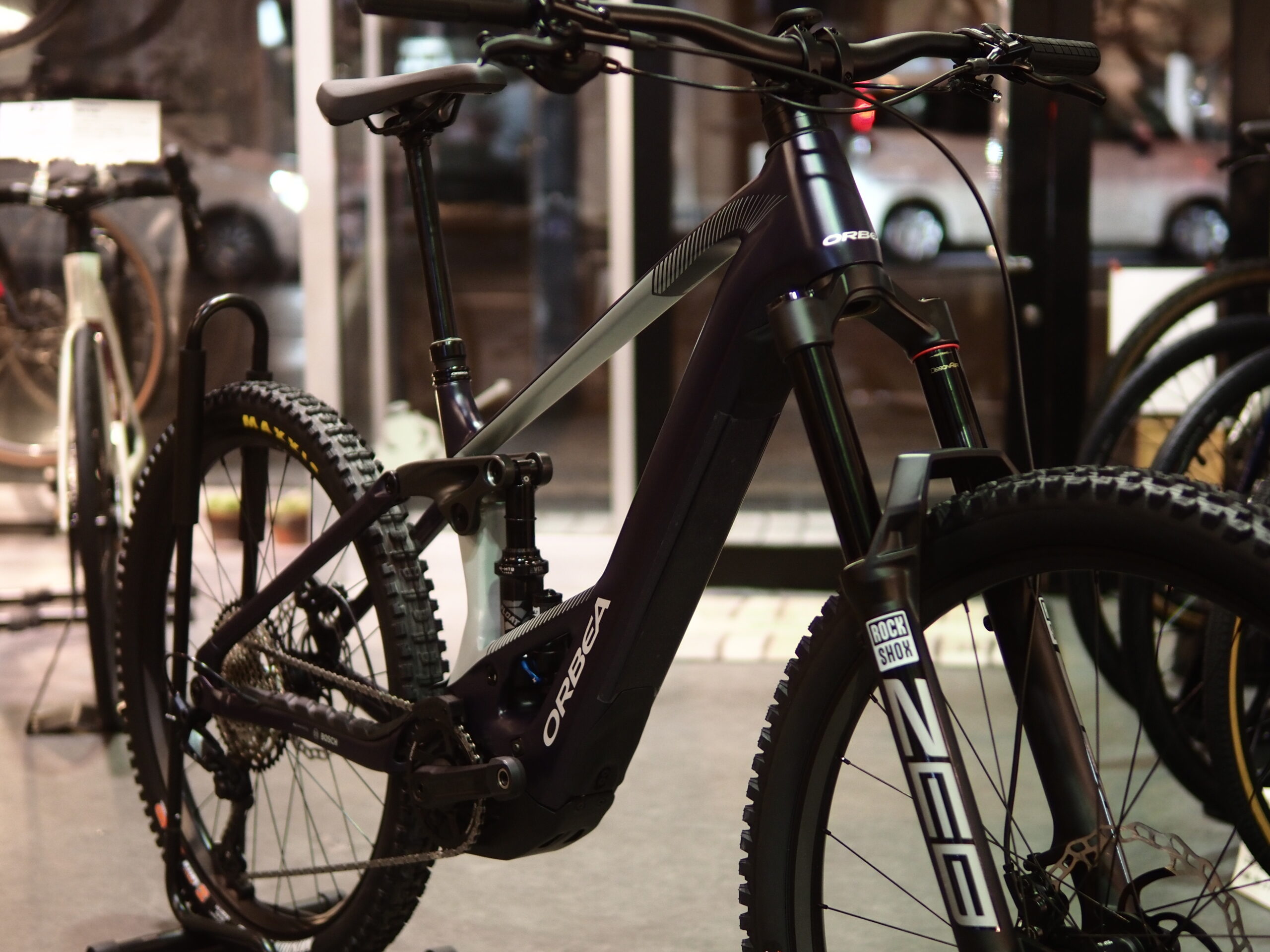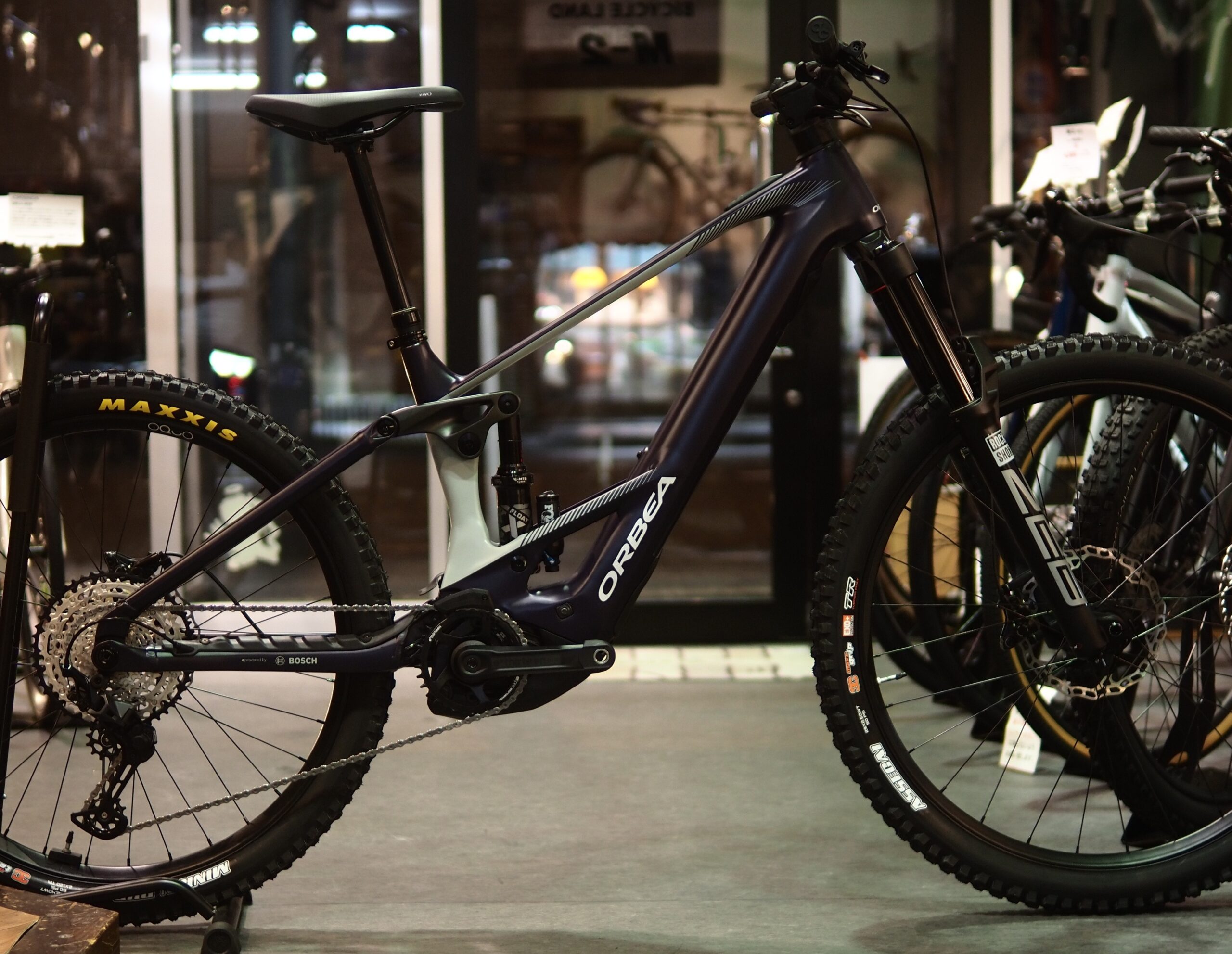E-MTBと言えばダウンチューブに搭載したバッテリーが大きくて、いかにもE-BikeというルックスになりがちですがORBEA WILDはかなりスマートに見えます。